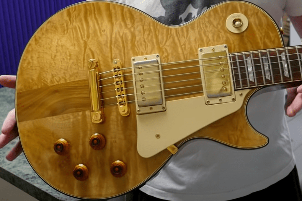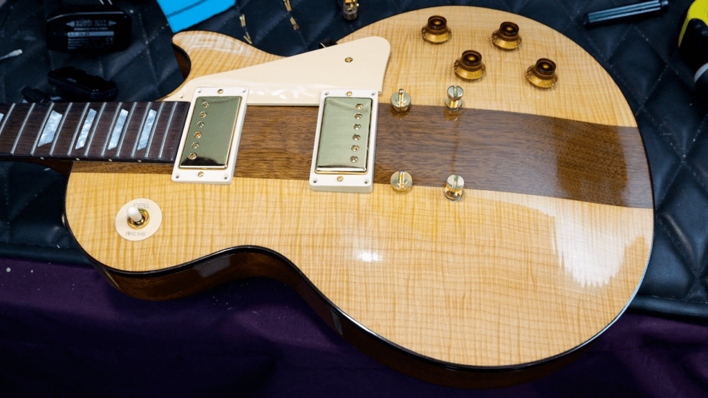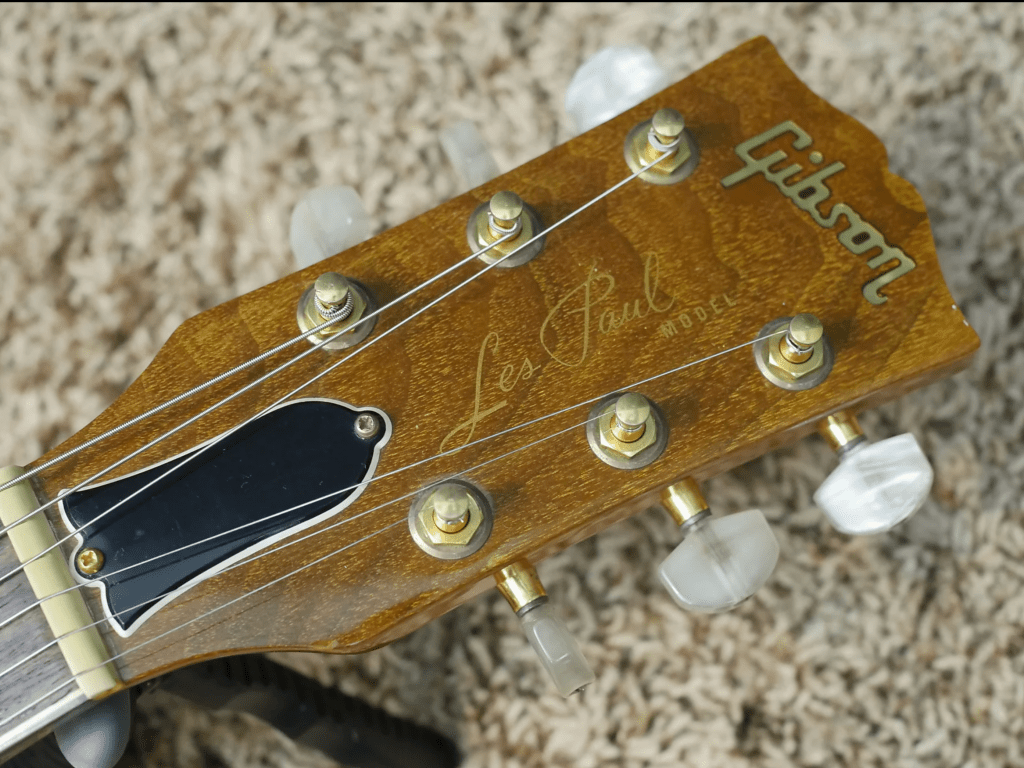 Their headstock veneer is a natural wooden color which is quite unique for any Les Paul! It is important to note that they still have a veneer though – otherwise we would see the headstock wings from the face!
