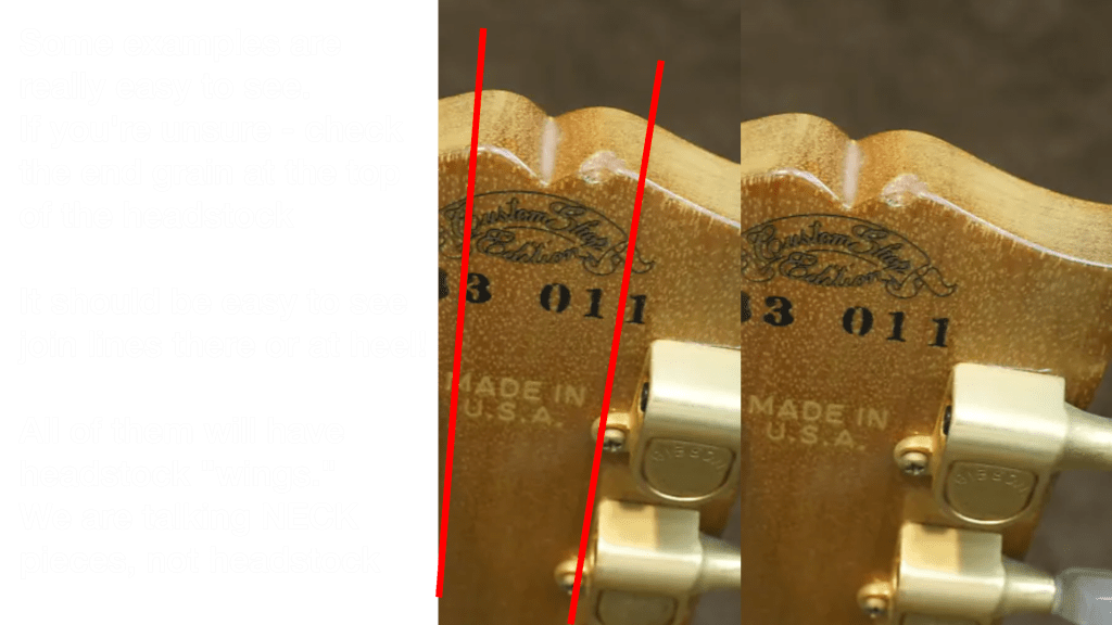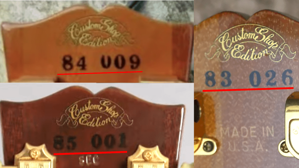 These also have a regular CS7xxxx or CS8xxxx Serial number with Gibson Custom decal at the bottom of the neck. No Made in USA Stamping. As we learned earlier – despite the originals saying “Custom Shop Edition” – only the 2000s Run of Spotlights were actually made at the Gibson Custom Shop.