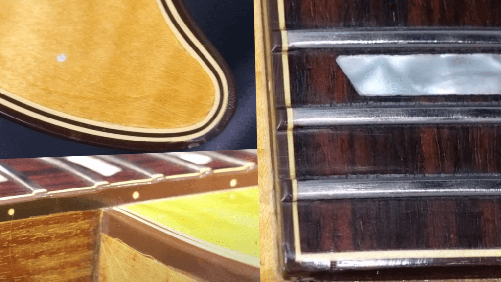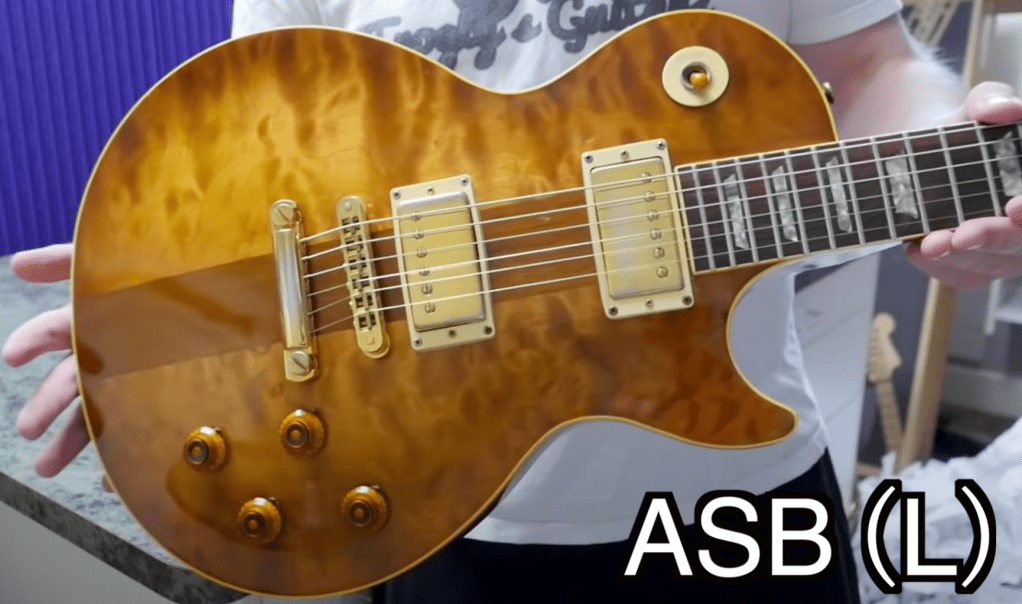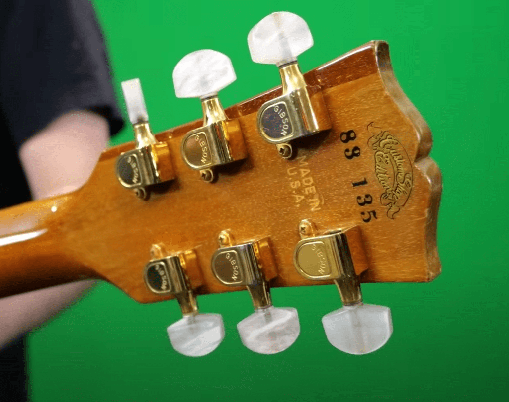 Next up are the tuners! We get sweet pearloid tips on the DELUXE Schaller M6 style tuners. The ASBs would feature No-Line, Double Ring Klusons or on rare occasion, a Gibson branded variant. The M6 tuners have stood the test of time… unfortunately, the Klusons didn’t so it is common to see them get replaced.