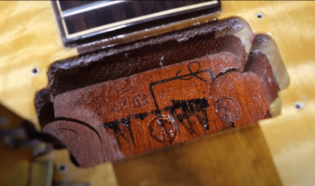 It is important to note that just because your guitar doesn’t have one of their initials… doesn’t mean they didn’t work on your guitar. Only the cream of the crop got “signed.” Randy was just one guy though… he didn’t build all of them! If you look inside the truss rod cavity route in a late 70s Les Paul, you might find the initials of the 2nd brother that worked at Gibson for a shorter period of time – RICKY Leonard (RL.) The initials in this location indicate who filed the frets! Only two of the Leonard Bros worked at Gibson – Floyd had 5 sons.
