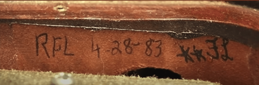 FL, also sometimes misread as JL due to it being in fancy script writing , was Randy’s father. He worked in the Sound Check booth. If you have his initials in there – it sounded GREAT! If it looked fantastic, you’ll have a secret code ranging from FL+, FL+++, FL*. Occasionally he signed the bottom shielding plate too.
