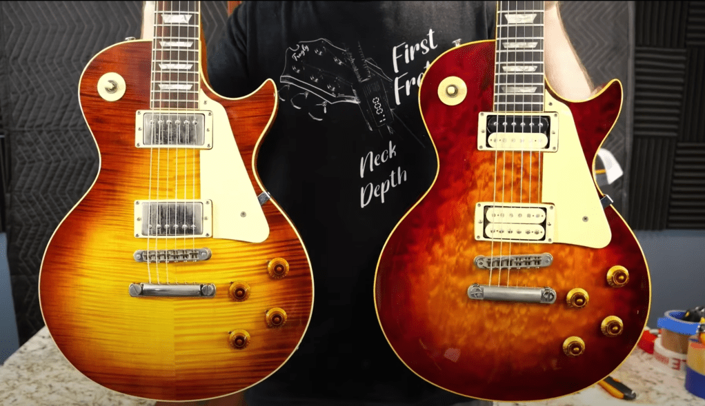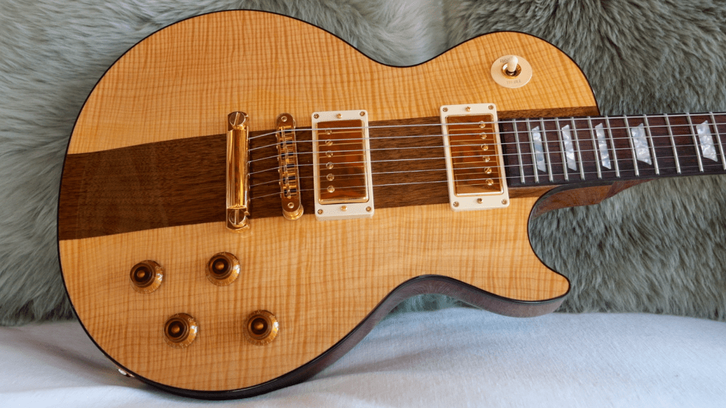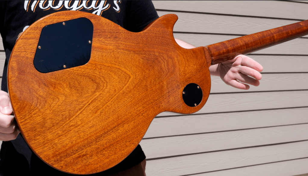 It is common to find a FIGURED Mahogany neck on these too! The neck profile is quite chunky and made from one piece of mahogany which blends both of the original’s specs together (3-piece Chunky vs 1-piece Thin.)